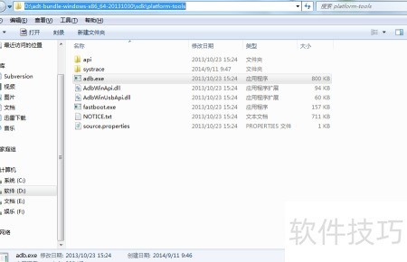 4、 进入SDK文件夹,定位到adb.exe文件,复制其完整路径。