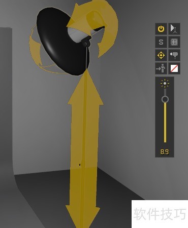 1、 打开Set a light 3D,选取场景中的灯光,操作所示。