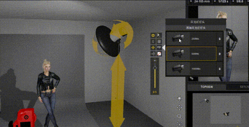 2、 更换灯头后,灯光功率变化将实时影响场景与预览窗口效果,具体所示。