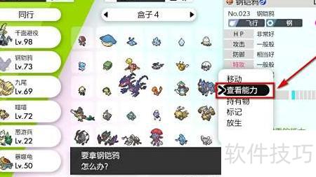 4、 挑选宝可梦后查看其能力数值。