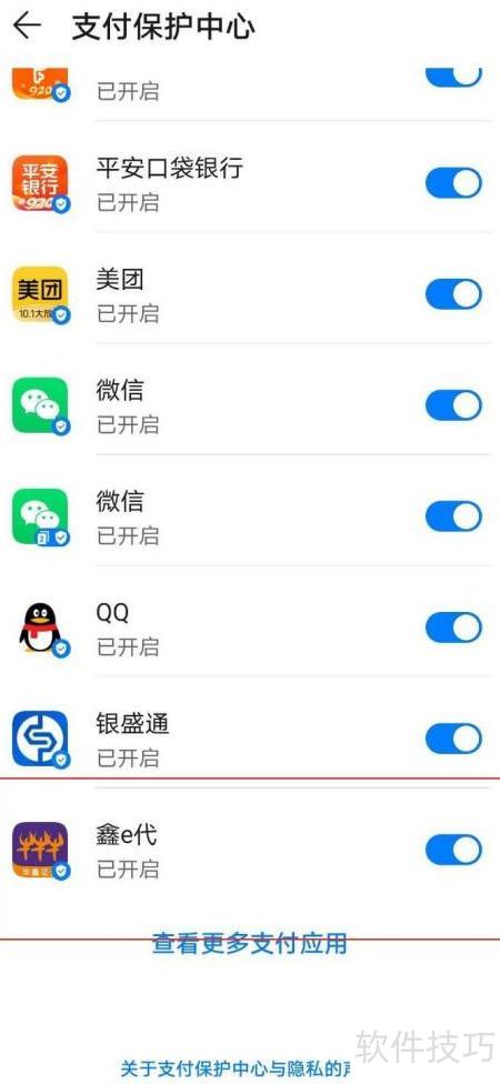 5、 打开支付保护中心,找到鑫e代选项,关闭其右侧的开关即可完成操作。