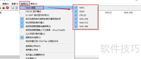 5、 通常情况下,我们无需计算所有哈希类型,但HashMyFiles默认会全选,处理大文件时极为耗时,效率低下。建议根据实际需求自定义选择,一般启用MD5、SHA1和SHA256即可,其余按需开关。此外,软件支持对哈希类型进行拖动排序,便于按个人习惯调整显示顺序,提升查看效率,操作灵活便捷,能显著优化使用体验,尤其适合频繁校验文件完整性的用户。