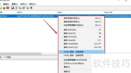 7、 可将MD5/SHA1哈希值列表便捷复制至剪贴板,或导出保存为文本、HTML、XML格式文件,方便后续使用与分享。