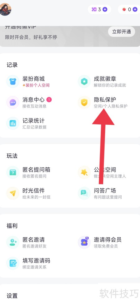 2、 进入个人中心,点击隐私保护图标即可。