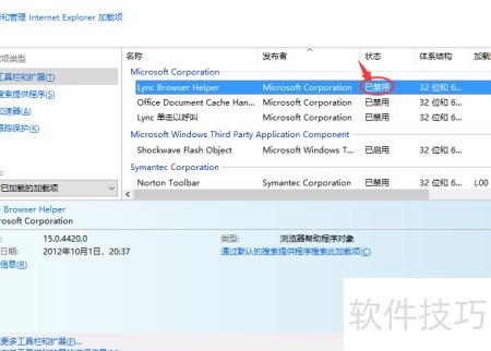 3、 在加载项管理界面,勾选已启用的项目,然后点击禁用按钮即可。