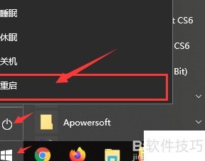 6、 为确保设置生效,请返回电脑桌面,点击左下角开始按钮,在弹出菜单中选择电源图标,然后点击重启选项以重新启动计算机。