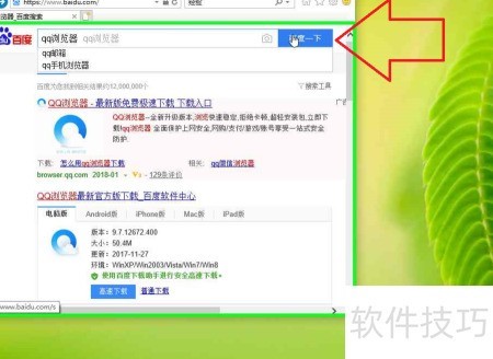 3、 在百度搜索框中输入qq浏览器,然后按下回车键进行搜索,即可找到相关结果。