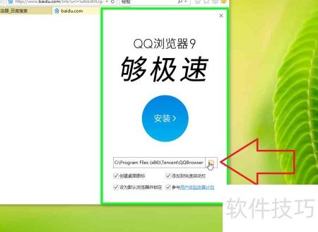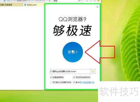 9、 在QQ浏览器9.7 安装窗口中,使用鼠标左键点击相应位置。