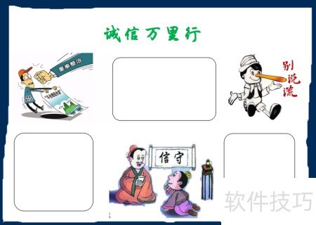 3、 在手抄报下方描绘诚信主题的画面