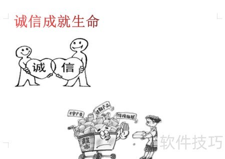4、 在诚信成就生命下方,绘两个小人高举诚信二字。