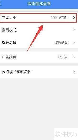 9、 在网页浏览设置界面,点击进入字体大小选项。