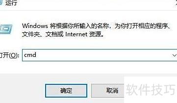 7、 按下Windows + R键打开运行窗口,在输入框中键入cmd,点击确定即可启动命令提示符。