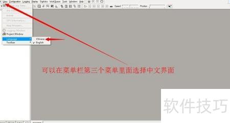 4、 打开后,按图示在第三个菜单中切换为中文界面。