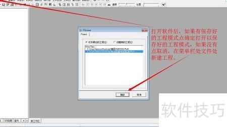 5、 启动软件后,若有已保存的工程模式则选择使用,否则取消并创建新工程。