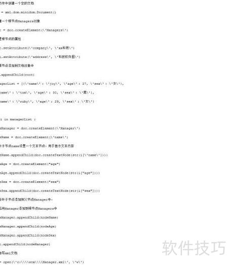 1、 使用xml.dom.minidom模块可实现XML文档的创建。基本步骤包括:首先在内存中生成数据,然后构建XML内存对象(即DOM树),接着创建根节点,再向根节点添加所需数据,最后将内存中的XML对象写入文件。以下是一个简单的创建XML文档的示例: