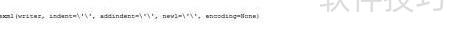 8、 将内存中的XML文档树写入指定文件,参数包括目标文件对象及缩进格式。