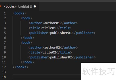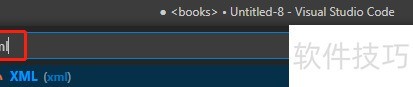 4、 切换至 XML 语言模式,使 VSCode 能正确识别并处理文本内容为 XML 格式。