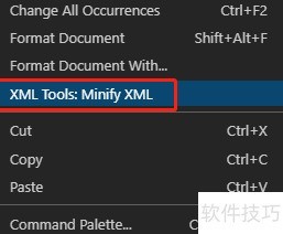 7、 若需压缩XML,可右键选择XML Tools: Minify XML功能进行操作。