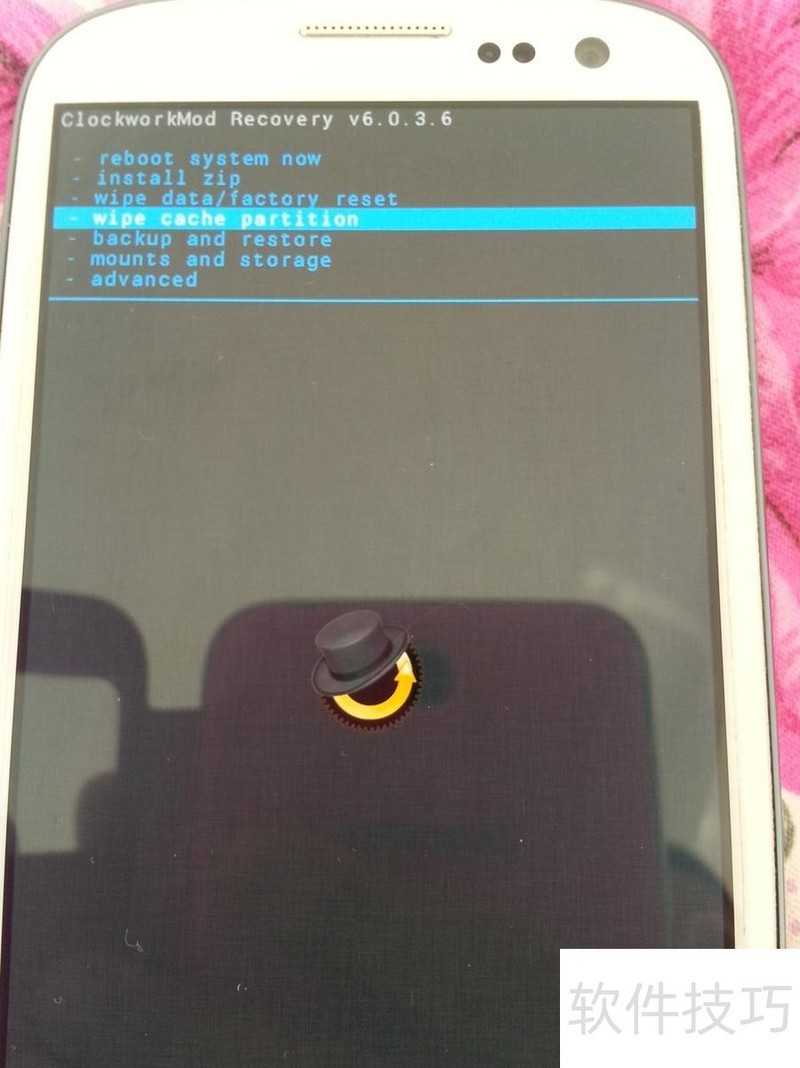 4、 关机后,同时按住音量上键、i9300屏幕下方中间实体键和电源键即可进入CWM Recovery模式。