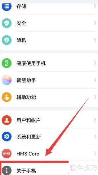 2、 进入设置,选择关于手机选项。