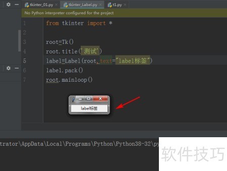 3、 利用Label控件创建标签,并通过text属性设置其显示内容。