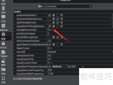 4、 在 headphonegain 中设置数值为 0.6
