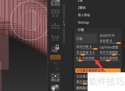 在ZBrush 2021.6.2中,将文本亮度设为0.6的方法如下:进入界面设置,找到文本显示选项,调整亮度滑块至0.6即可完成设置。