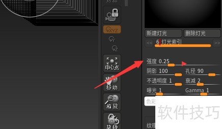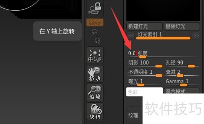 在ZBrush 2021.6.2中,将强度设为0.6的方法如下:进入相关工具面板,找到强度调节滑块,拖动至0.6数值位置即可完成设置。