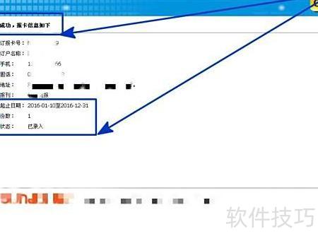 8、 进入下一步后,官网立即显示订阅成功提示,并详细列出报刊名称、订阅人姓名、地址及起止日期等信息。
