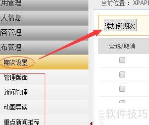 9、 在左侧菜单选择,依次进入期次设置并添加新期次,操作所示。