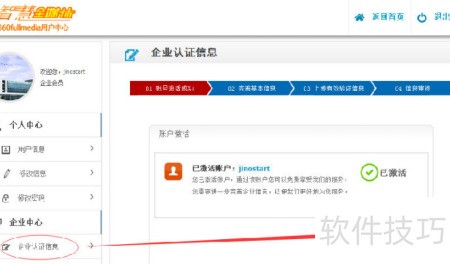 4、 点击企业认证后提示账号已激活,继续点击下一步完善信息即可开始填写认证资料。