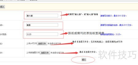 11、 选择要管理的发布期次,添加版面信息,如名称、版次、版面图及PDF文件,具体操作见下图。