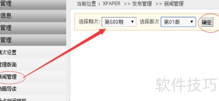15、 进入发布管理,选择新闻管理,选定期刊与版面后添加新闻内容。