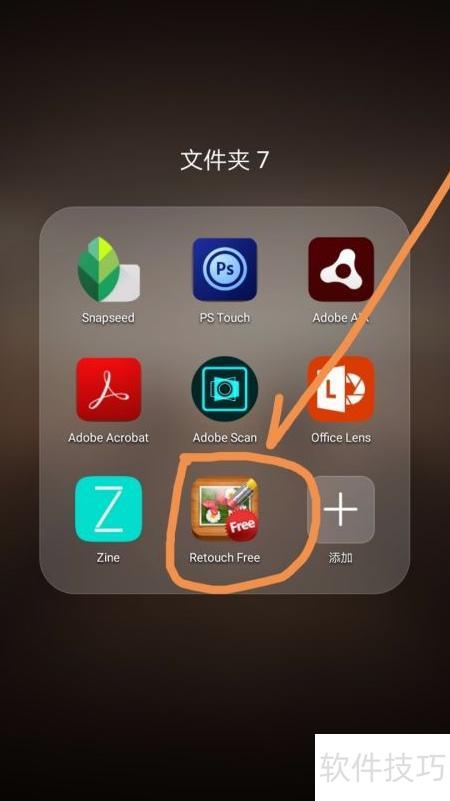 1、 首先在手机中找到并点击retouch free应用图标。