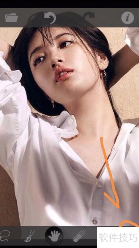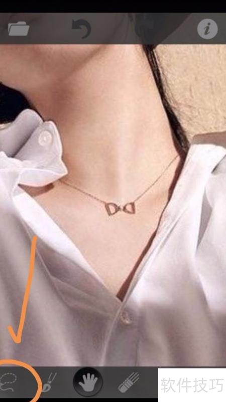 4、 图片已显示在应用界面,点击左下角的套索工具即可操作。