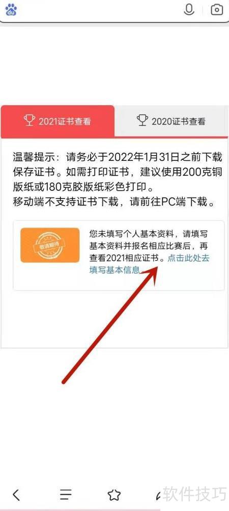 打开手机百度浏览器,搜索国才杯,登录个人账号后,填写所在省份、学校及学号等信息,提交验证并查询合格证书。