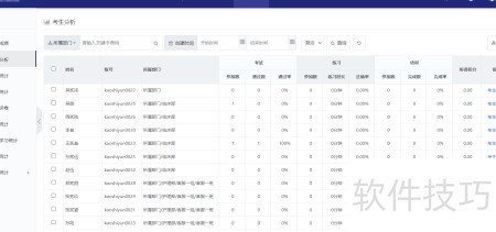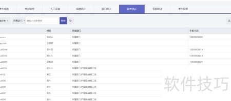 4、 系统可对考生进行全面分析,展示每位考生的姓名、账号及所属部门,并统计其参与考试、练习和培训的具体情况,便于全面掌握考生的学习与考核动态。