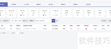 1、 考试结束后,系统自动批改客观题,主观题经人工评阅后,成绩、答题时长、正确率、得分率及是否通过等信息即时显示,考生本次考试的各项数据清晰呈现。管理员无需手动统计,大幅提升了工作效率,考试结果一目了然。