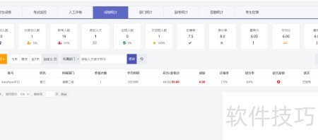 2、 成绩统计功能支持对多次参考的考生成绩进行多维度分析。系统默认以考生的最高成绩生成统计报表,并据此进行排名,同时显示考生姓名及参考次数。用户还可根据实际需求,选择按平均成绩或最低成绩进行统计,满足不同场景下的分析要求。