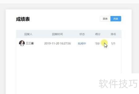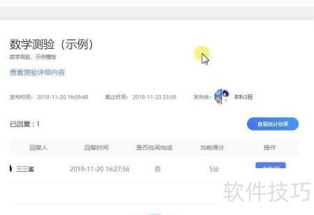 3、 点击查看统计结果获取测试详情,点击列表后可在下方导出成绩单为Excel文件。