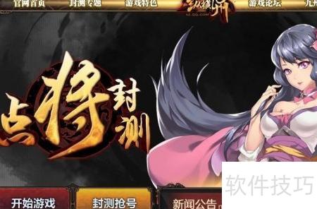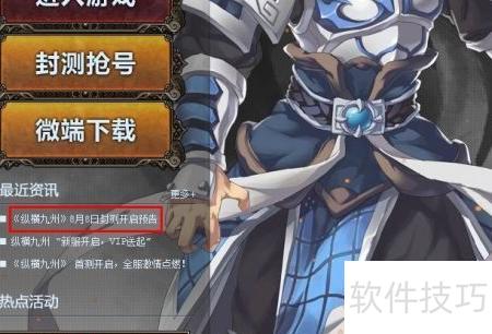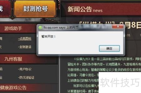 1、 访问腾讯游戏纵横九州官网 http://9z.qq.com,进入页面后点击最近资讯栏目中的更多或直接选择纵横九州8月8日封测开启预告链接即可查看详情。
