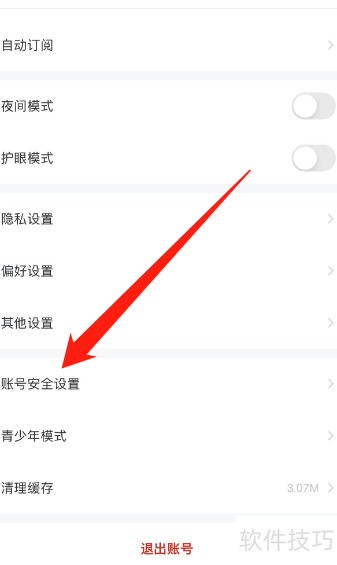 3、 进入设置,选择账户安全选项。