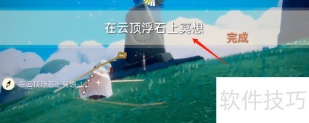 5、 飞往云野蝴蝶平原右侧隐藏区域,于云顶浮石上静坐冥想,即可完成今日任务。