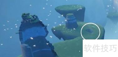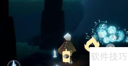 2、 在雨林水母图左侧岔路高台处,靠近小金人位置收集橙色光芒。