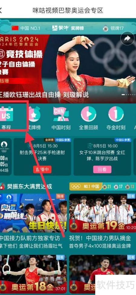 1、 打开咪咕视频,进入巴黎奥运专区查看赛程安排。