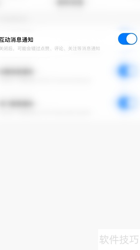 4、 在通知设置中点击互动消息通知右侧的圆点。