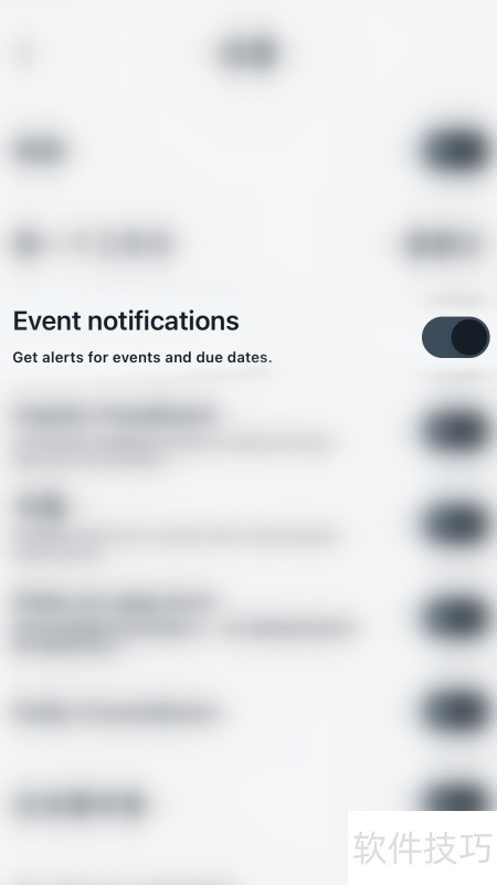 3、 在设置页面中,点击事件通知右侧的圆形图标。