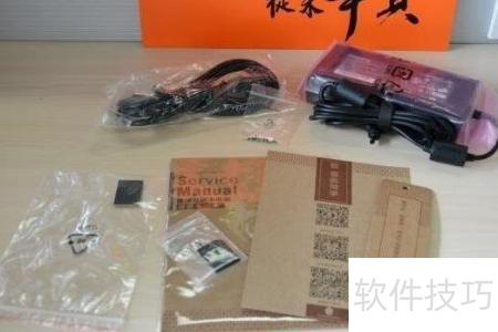 4、 笔记本下方黑色盒子内含电源适配器及保修卡。