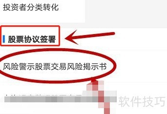 6、 选择股票协议签署,然后点击风险警示股票交易风险揭示书。