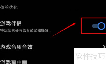 3、 下滑至游戏伴侣,开启其后方的开关即可完成。